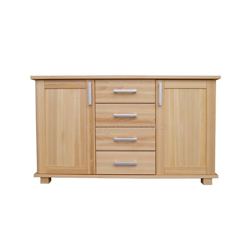 Buková komoda BORA B14 je doplněná o moderní úchyty stříbrné barvy.