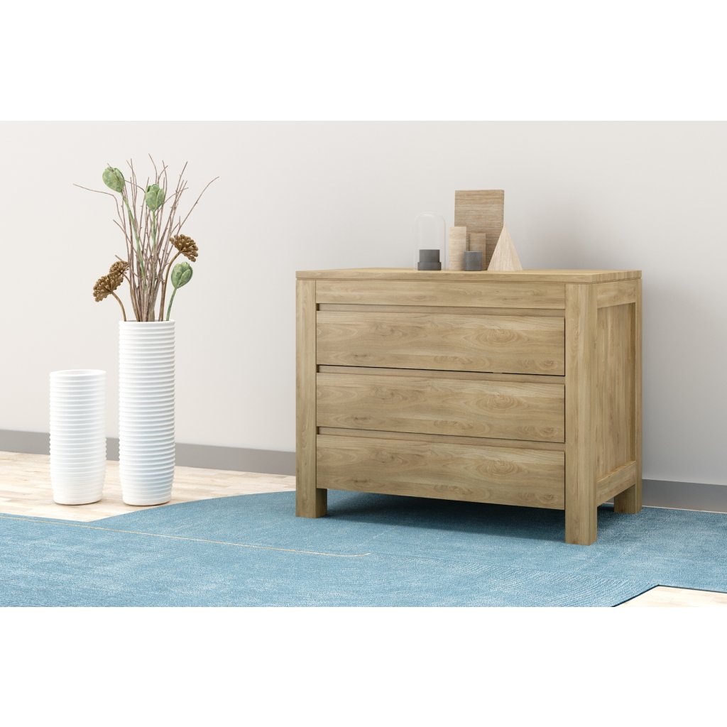 S rozměry 80 x 100 x 55 cm nabízí komoda dostatečný prostor pro uložení vašeho oblečení, ložního prádla či jiných předmětů. Tři šuplíky s tichým zamykáním a plným výsuvem zajistí pohodlný a tichý přístup k vašim věcem.