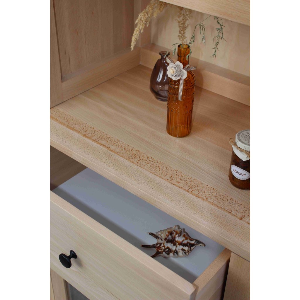 Masivní kredenc ROMA je vyrobena z masivního tvrdého bukového dřeva a ošetřena bezbarvým lakem, který dá vyniknout nádherné dřevité kresbě. Celek doplňuje volitelné vnitřní osvětlení a 20 cm prostor pod nábytkem, který usnadňuje údržbu a zaručuje, že se pod něj vejde jakýkoliv robotický vysavač.