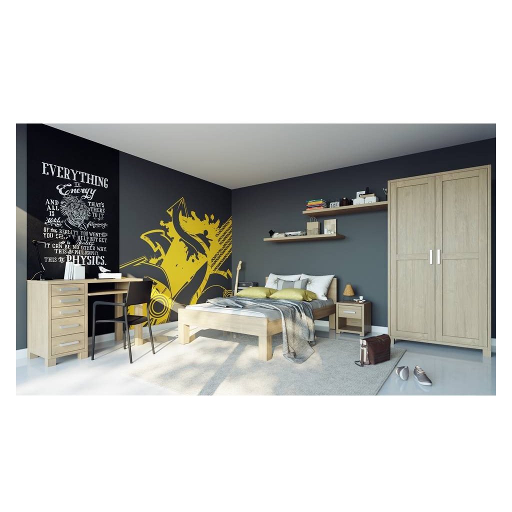 Buková skříň KANSAS Vel nabízí ve dvoudvéřové části šatní tyč a polici v horní části. V jednodveřové části se nacházejí police.