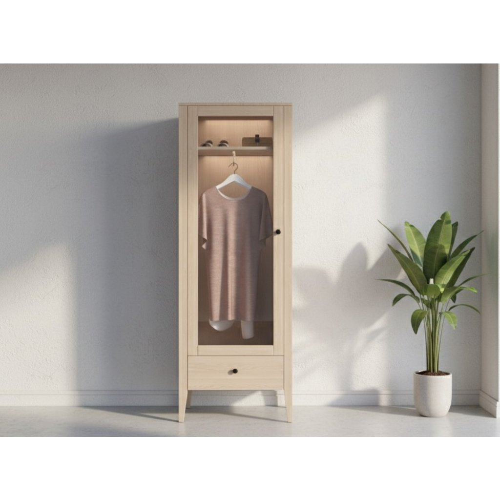 Masivní skříň ROMA je vyrobena z masivního tvrdého bukového dřeva a ošetřena bezbarvým lakem, který dá vyniknout nádherné dřevité kresbě. Celek doplňuje volitelné vnitřní osvětlení a 20 cm prostor pod skříni, který usnadňuje údržbu a zaručuje, že se pod něj vejde jakýkoliv robotický vysavač. Skříň nabízí výsuvný věšák a polici, k uloženi všech potřebných svršků.
