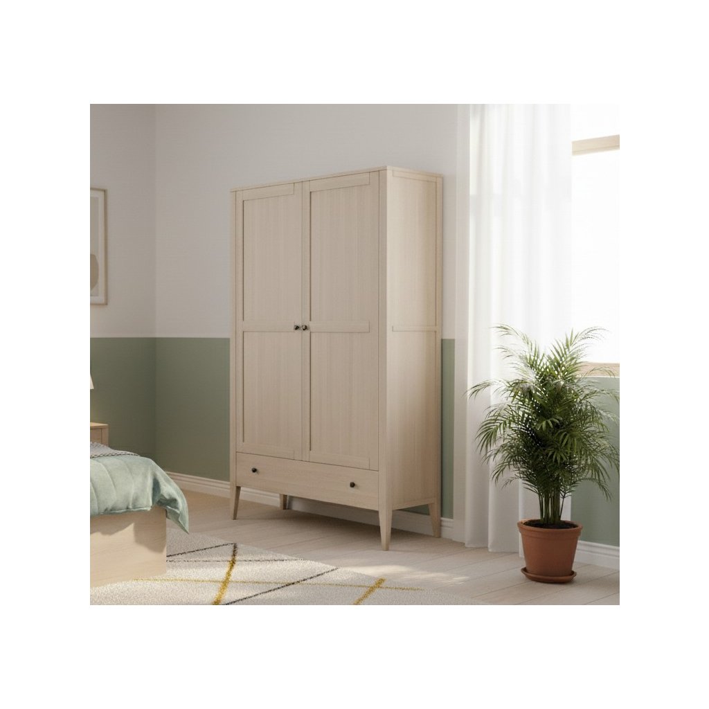 Masivní skříň ROMA je vyrobena z masivního tvrdého bukového dřeva a ošetřena bezbarvým lakem, který dá vyniknout nádherné dřevité kresbě. Celek doplňuje volitelné vnitřní osvětlení a 20 cm prostor pod komodou, který usnadňuje údržbu a zaručuje, že se pod něj vejde jakýkoliv robotický vysavač. Skříň nabízí police k uloženi všech potřebných svršků.