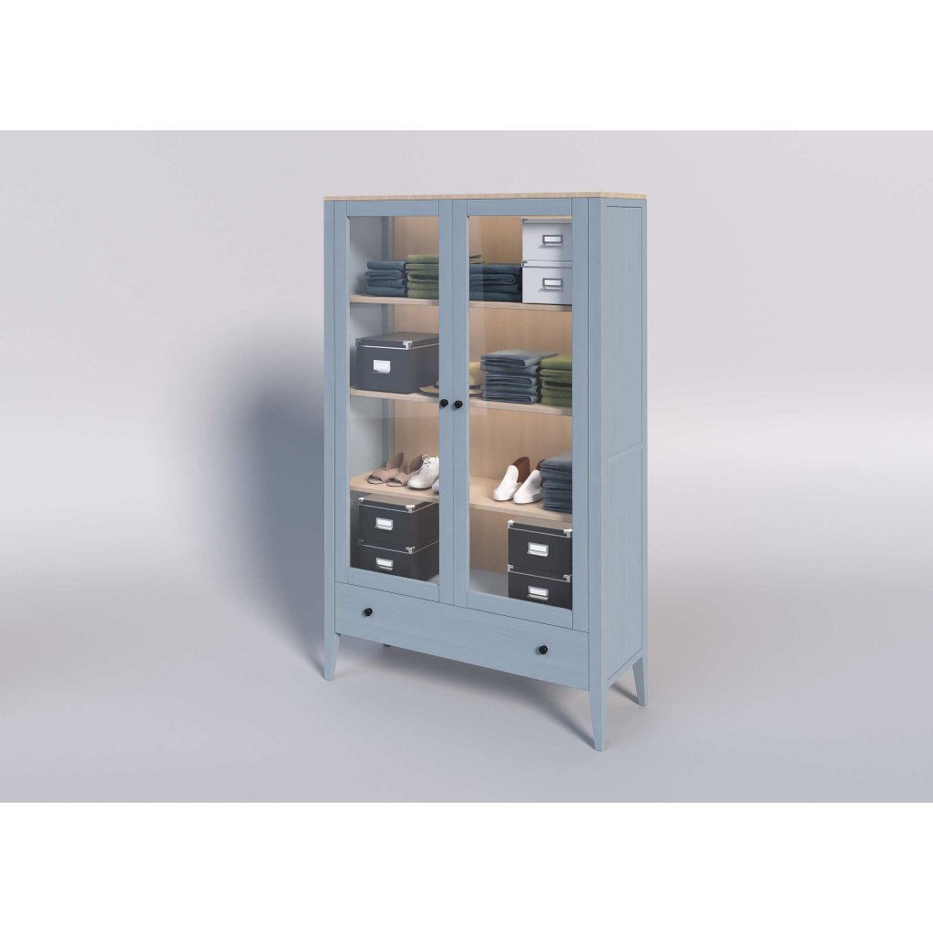 Buková vitrína ROMA SST4 šedomodrá