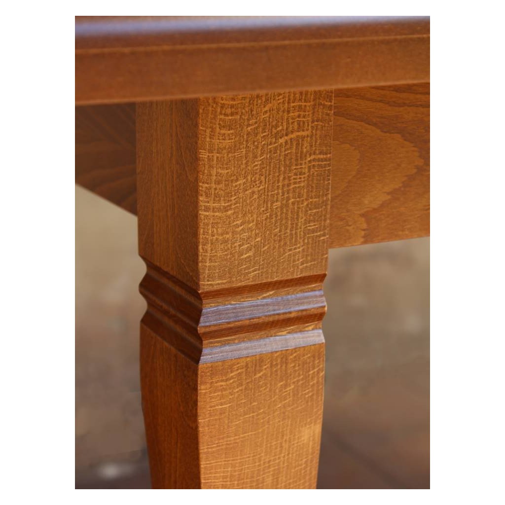 Jídelní stůl KAMER je vyroben z kvalitního materiálu - bukového masivu a bukové dýhy - deska (dýha-masív), nohy stolu 100% masív, který je povrchově upraven lakem.