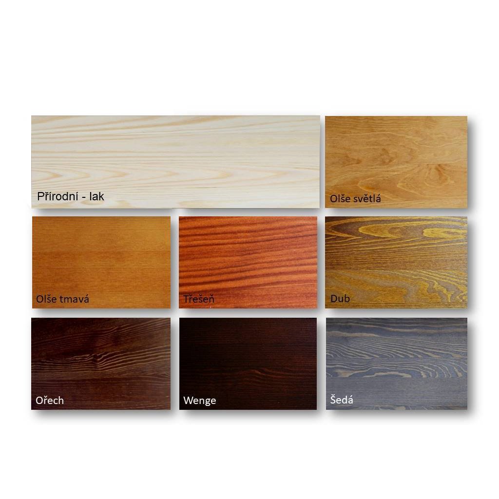 Bukovou skříň BORA je možno objednat v širokém barevném spektru provedení (dle vzorníku). Základní cenu v bezbarvém laku. Ostatní barevné varianty jsou za příplatek 10 %.
