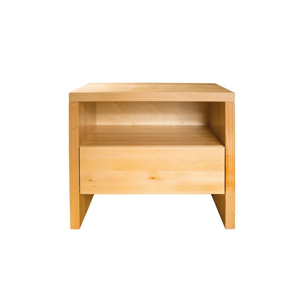 Bukový noční stolek Kungur je zhotoven z kvalitního bukového masivu. O povrchovou úpravu se postaral bezbarvý lak, který zajistí, že noční stolek bude dlouhé roky stále přirozeně krásný a zároveň ho ochrání před případným poškozením v podobě oděrek. Noční stolek je vybaven jednou zásuvkou nad níž se nachází police. Zásuvka je na kolečkových výsuvech s 2/3 otevřením.