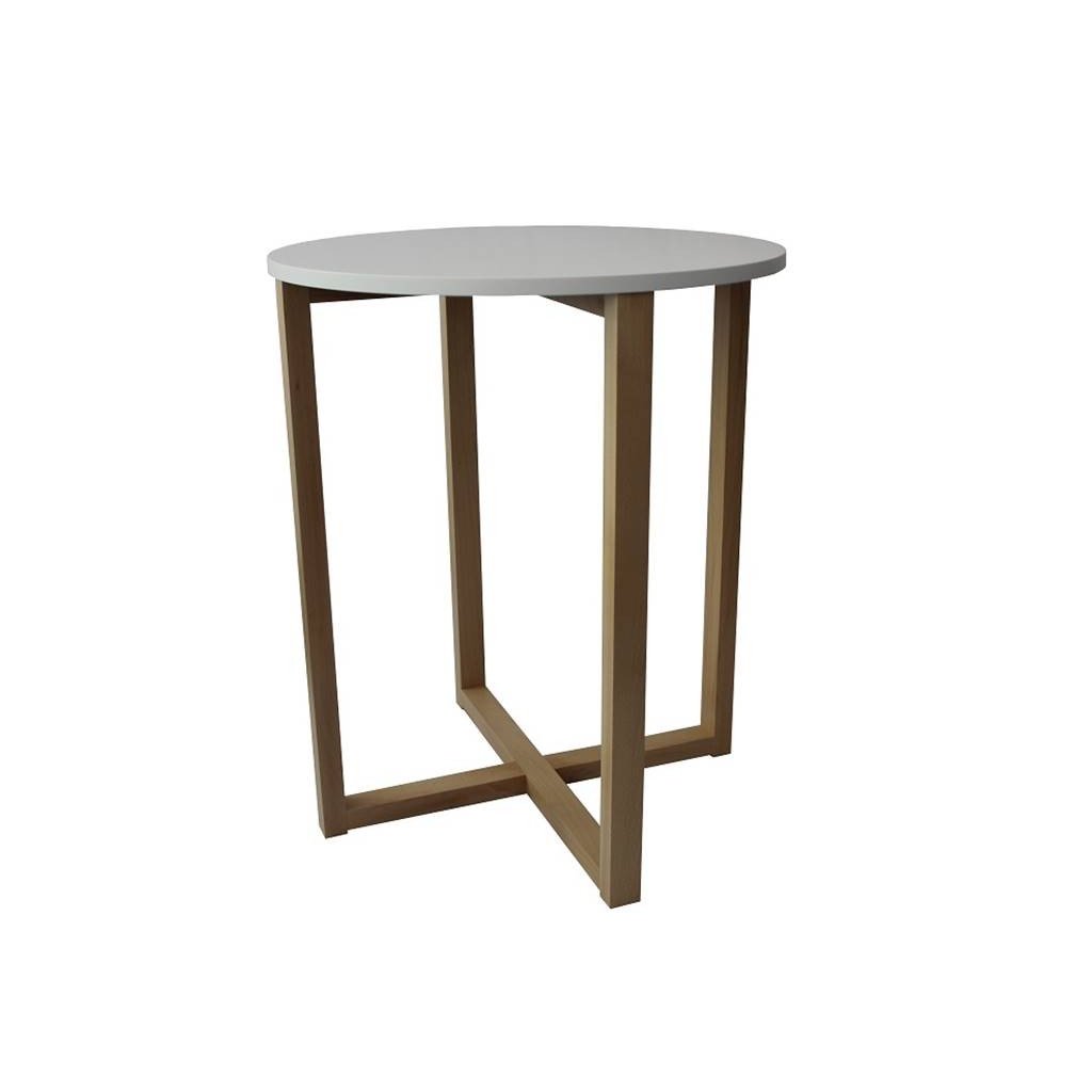 Bukový kulatý stolek OLI je vyroben z kvalitního materiálu - bukového masivu a bukové dýhy - deska (dýha-masív), nohy stolu 100% masív, který je povrchově upraven lakem.