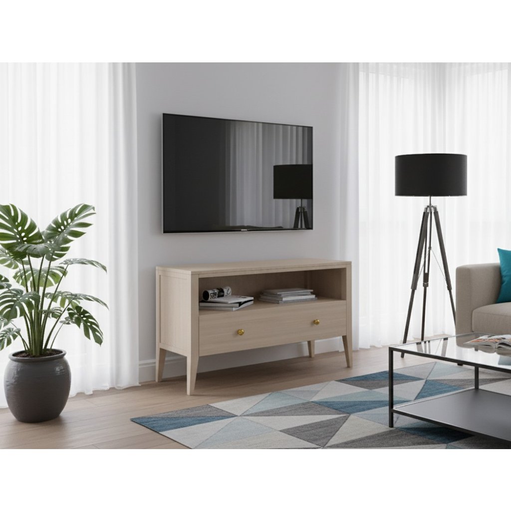 Bukový televizní stolek ROMA je vyroben za masivního tvrdého bukového dřeva a ošetřen bezbarvým lakem, který dá vyniknout nádherné dřevité kresbě. Celek doplňuje volitelné vnitřní osvětlení a 20 cm prostor pod komodou, který usnadňuje údržbu a zaručuje, že se pod něj vejde jakýkoliv robotický vysavač.