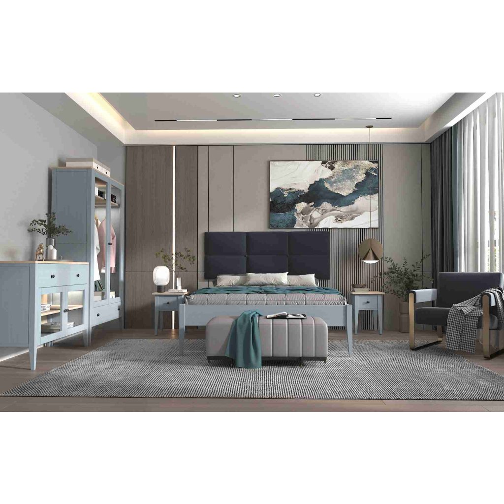 - Elegantní šedomodrá pro moderní i klasické interiéry