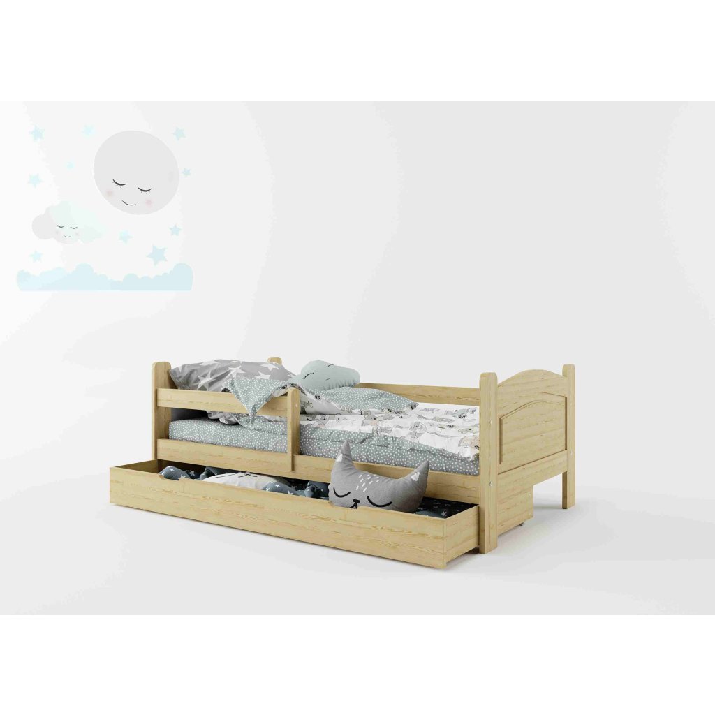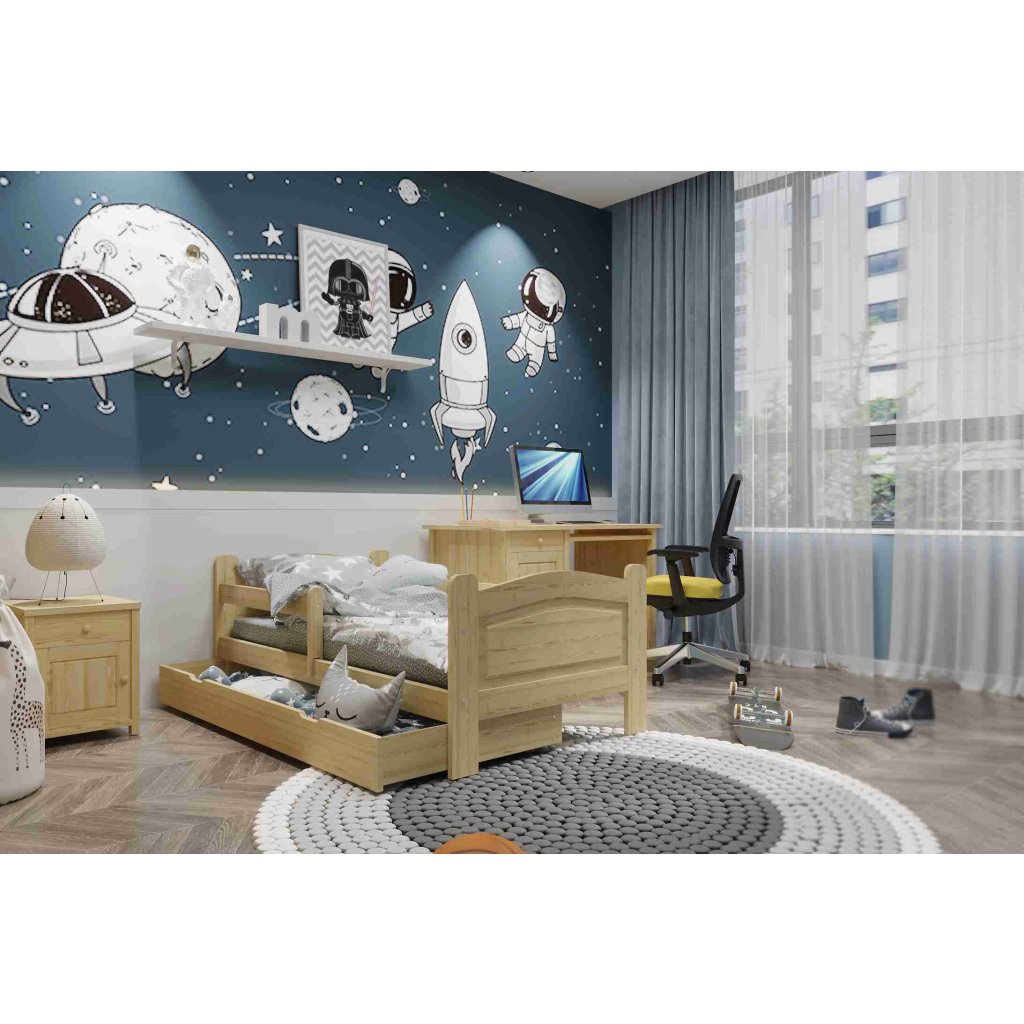 v ideálně doplňuje noční stolek z masivu SN05 se šuplíkem a dvířky nebo noční stolek se dvěma šuplíky SN03. Pro uskladnění dětských věcí je skvělou možností komoda z masivního dřeva a prostorná skříň také z masivu.