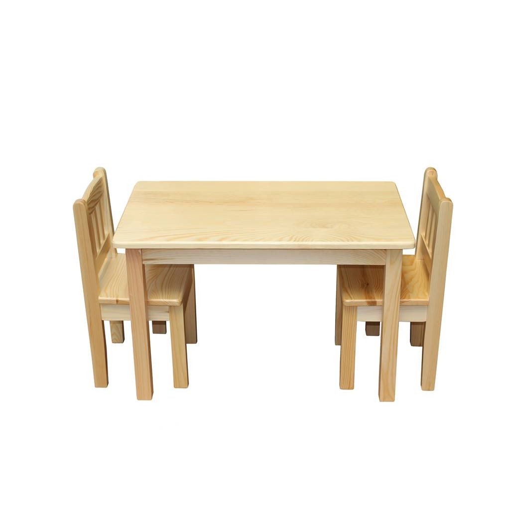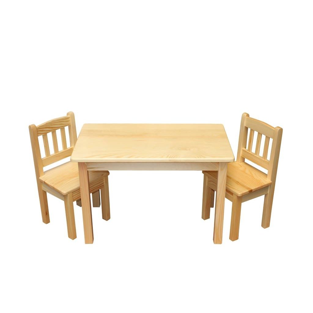 Dětský set MINI si jistě zamiluje i vaše dítě. Dětský stůl s židlemi je vyroben z borovicového masivu, který je pečlivě opracován a natřený bezbarvým lakem. Dětský komplet obsahuje dvě židličky a dětský stůl, který je vhodný především pro menší děti, které už umí samostatně sedět (asi od 2 let).