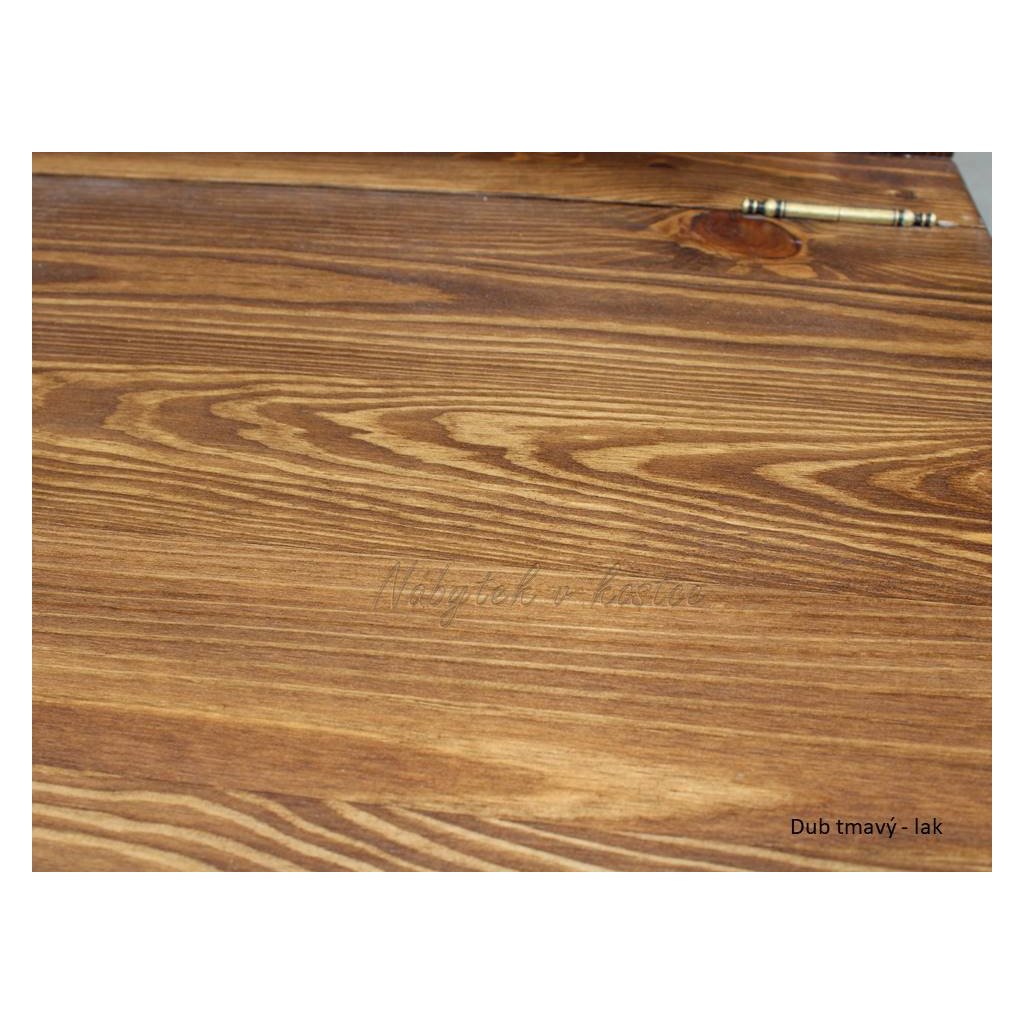 Povrch lze zvolit jako vosk nebo lak a v odstínu, který nejlépe ladí s interiérem – vosk působí přirozeněji, lak zase nabídne odolnější a hladší povrch. V každém případě získáš nadčasový nábytek, který se neokouká a bude sloužit dlouhé roky.