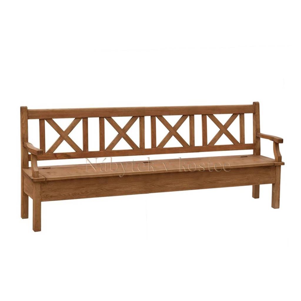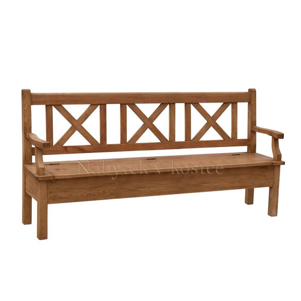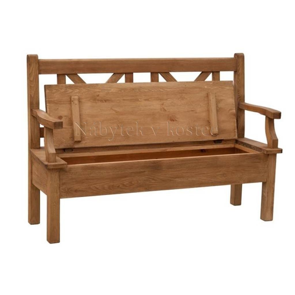Lavice je vyrobena z masivního borovicového dřeva, pouze dno úložného prostoru je ze sololitu.