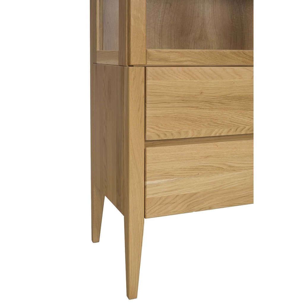 Dřevěná vitrína OSLO nabízí úložné prostory v podobě polic a šuplíků. Moderní design a kvalitní zpracování zajistí pevnost, stabilitu, bezpečnost a dlouhou životnost.