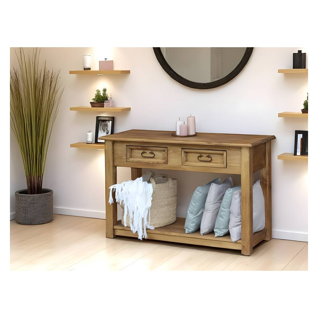 Kolekce MEXICANA nabízí kvalitní celomasivní nábytek, který je vyroben z 100% masivního dřeva, pouze dna šuplíků a záda skříní tvoří dřevěná dýha. Stylovou podobu tomuto nábytku dodávají retro úchyty a stejně tak i závěsy skříní a komod, které jsou účelově zrezivělé či zkorodované, což vyvolává dojem romantického venkova.