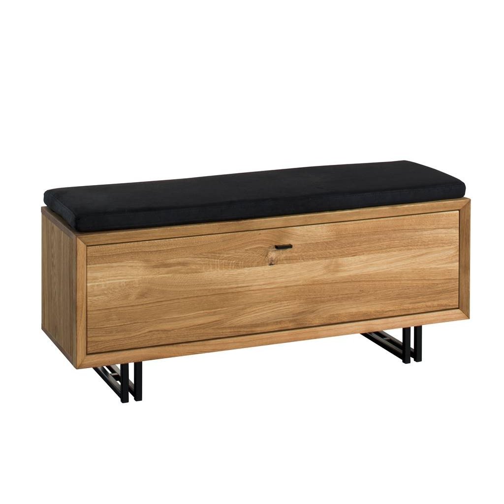 Dubová masivní lavice BOGOTA 61 je stylová masivní lavice s úložným prostorem a podsedákem, vhodná především pro interiéry předsíně. Dubový nábytek BOGOTA se díky svému designu hodí do každé domácnosti. Harmonické sloučení kartáčovaného masivního dubového dřeva a kovových prvků působí moderním a jedinečným dojmem. Povrch dřeva je ošetřen přírodním olejem německé značky Livos.