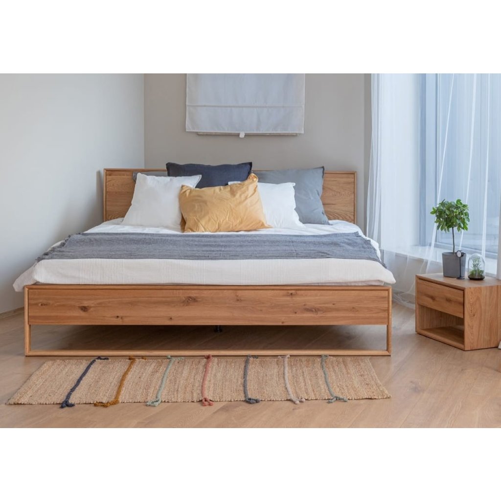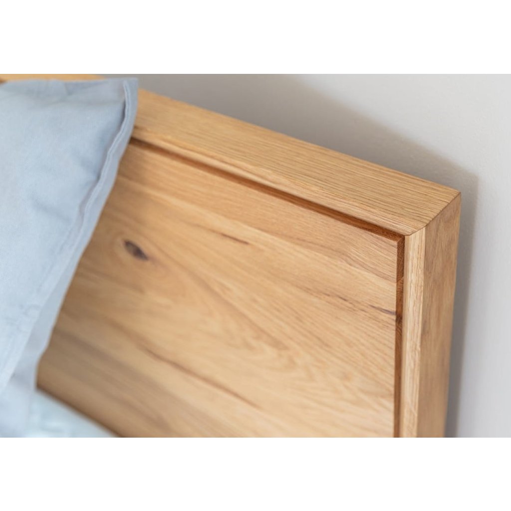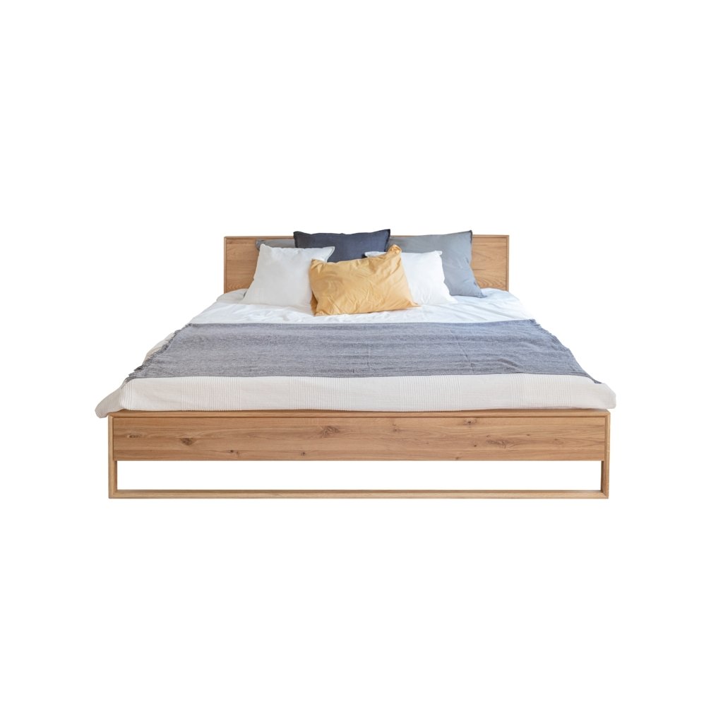 Postel jistě potěší také svým teplým zbarvením a přírodními liniemi s četnými suky, které doplňují jedinečný charakter nábytku.