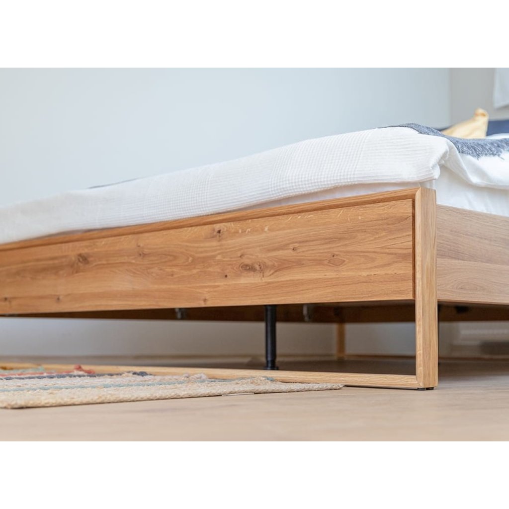 Dubová postel ADRIA kombinuje nadčasový styl s velice vysokou kvalitou. Zajímavá konstrukce, které bylo dosáhnuto zejména propojením nohou postele, činí nábytek nejen vizuálně odlehčeným, ale také mimořádně stabilním. Díky důmyslnému designu a tuhým výztuhám v konstrukci se nemusíte bát kývání ani žádných nepříjemných zvuků.