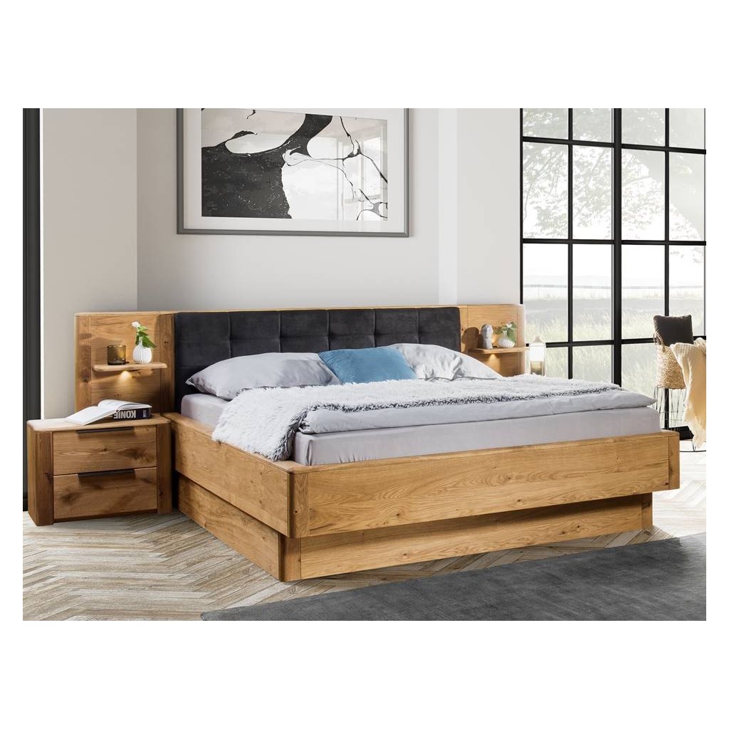 Dubová masivní postel VEGAS - TEXAS 14 s panely, s úložným prostorem.