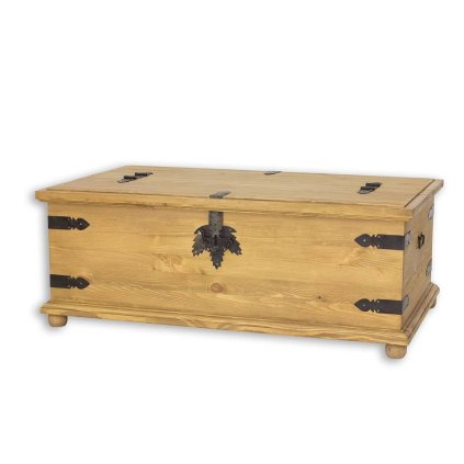 Masivní truhla ARCO4 Mexicana z borovicového dřeva v rustikálním stylu je skvělý nábytek k skladování různých drobností, nebo k uložení polštářů ve vaši ložnici...