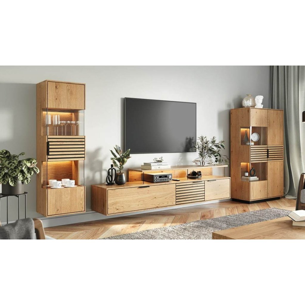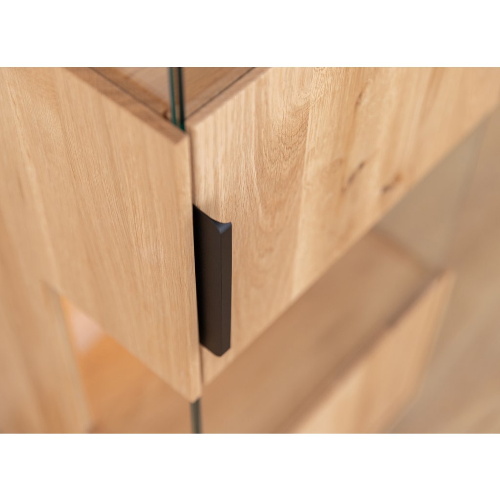 Dubová vitrína Ardano 1D zaujme svou masivní, ale zároveň moderní estetikou. Přirozená krása dubového dřeva je zdůrazněna výraznými suky a kresbou, zatímco zlatavý odstín dodává teplo a eleganci. Minimalistická forma vitríny ji činí univerzálně použitelnou v interiérech, kde se snoubí estetika s funkčností.