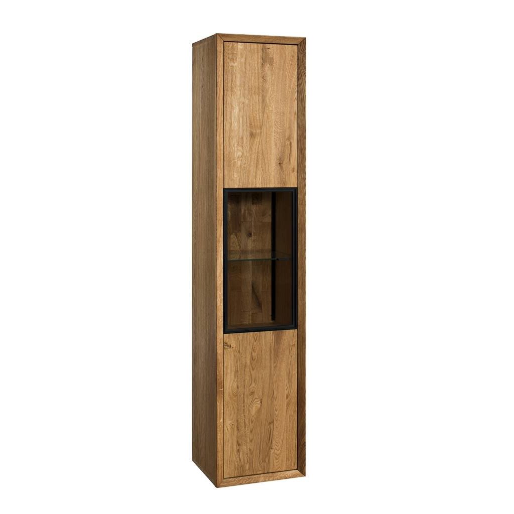 Dubová vitrína BOGOTA je stylová prosklená vitrína, která se výborně hodí pro interiéry obývacího pokoje i pracovny. Prestižní nábytek, který vyzdvihne eleganci a stylový vzhled každé místnosti. Dubový nábytek BOGOTA se díky svému designu hodí do každé domácnosti. Harmonické sloučení kartáčovaného masivního dubového dřeva, dubové dýhy a kovových prvků působí moderním a jedinečným dojmem.