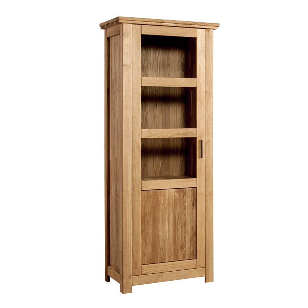 Dubová vitrína BERLIN 10 je vyrobena z masivního dubového dřeva. Vitrína je z částí prosklená, uvnitř má police, tato vitrína má otevírání dvířek na levou stranu. Elegantní kovový úchyt podtrhuje celkový design vitríny BERLIN 11. Vitrínu si velmi oblíbili příznivci jednoduchosti a elegance.