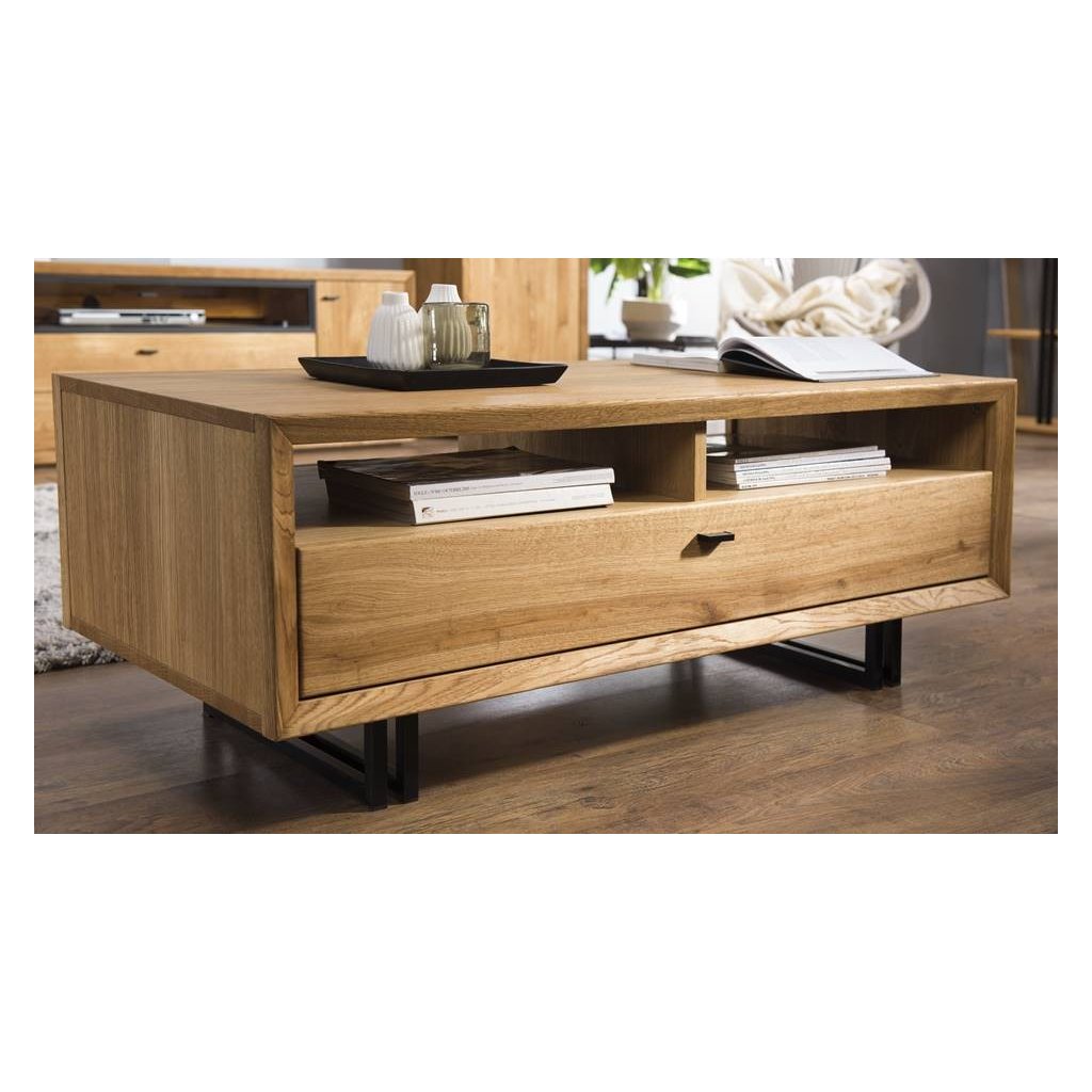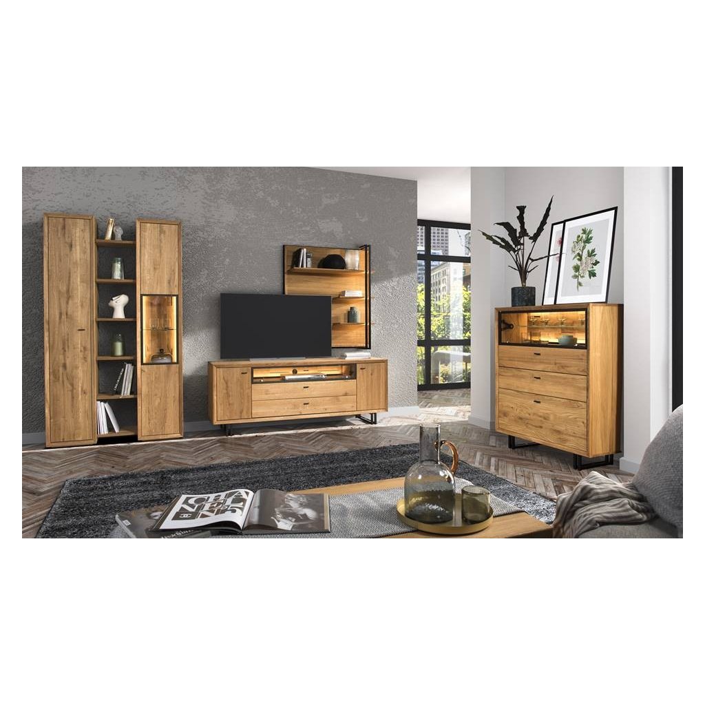 Imponující tvary, jednoduchost a vzdušnost. Dubový nábytek BOGOTA se vyznačuje výraznými tvary, jednoduchou elegancí a efektivními doplňky. Harmonické sloučení kartáčovaného masivního dubového dřeva, dubového dřeva a kovových prvků působí moderním a jedinečným dojmem. V kolekci BOGOTA naleznete komody, stěny nebo vitríny, které lze spolu kombinovat. Znatelná struktura dřeva a loftové prvky se budou krásně vyjímat. Kolekce BOGOTA je splněním snu o osobitém, stylovém bydlení z masivu s velkým množstvím úložného prostoru.
