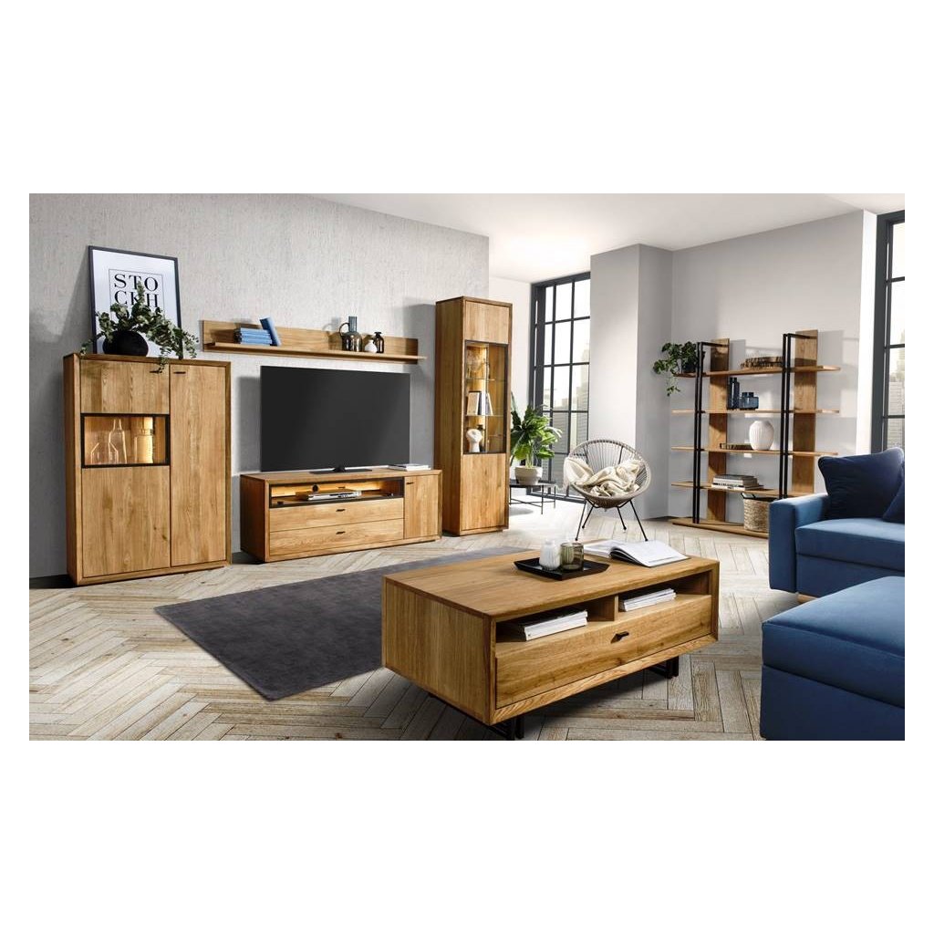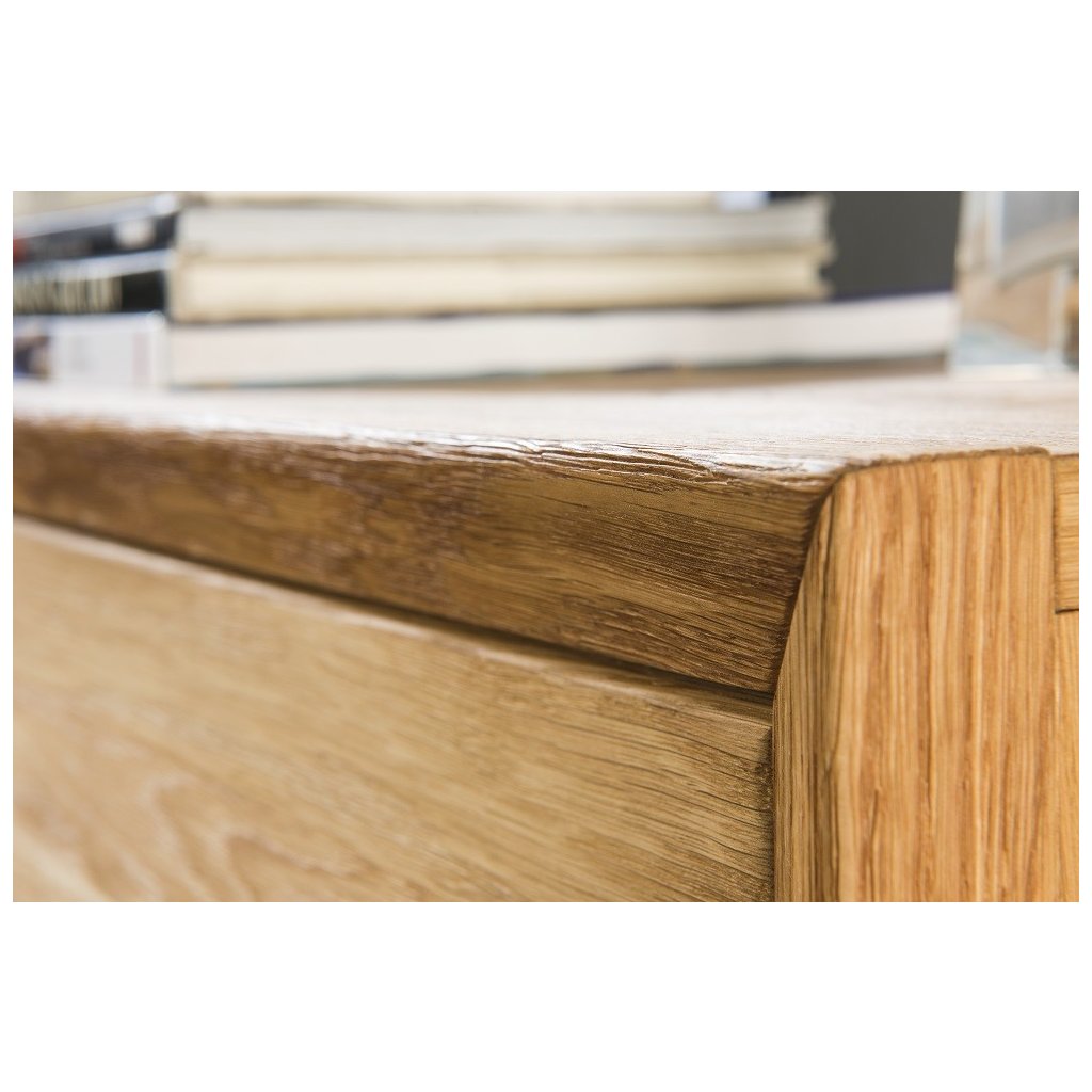 Imponující tvary, jednoduchost a vzdušnost. Dubový nábytek BOGOTA se vyznačuje výraznými tvary, jednoduchou elegancí a efektivními doplňky. Harmonické sloučení kartáčovaného masivního dubového dřeva, dubového dřeva a kovových prvků působí moderním a jedinečným dojmem. V kolekci BOGOTA naleznete komody, stěny nebo vitríny, které lze spolu kombinovat. Znatelná struktura dřeva a loftové prvky se budou krásně vyjímat. Kolekce BOGOTA je splněním snu o osobitém, stylovém bydlení z masivu s velkým množstvím úložného prostoru.