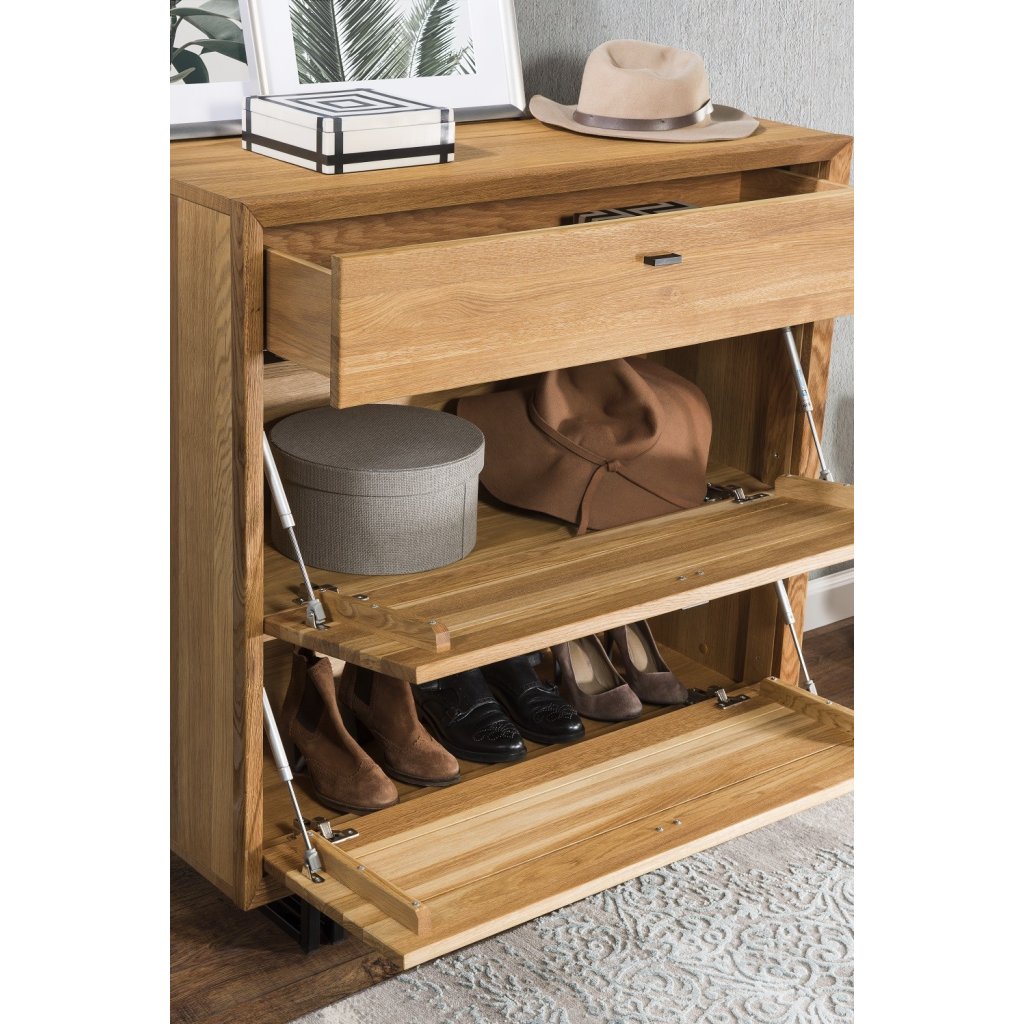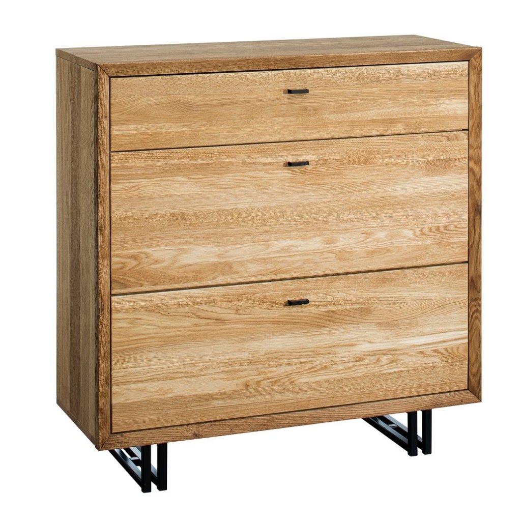 Dubový botník BOGOTA 10 je součástí kolekce BOGOTA. Botník BOGOTA 10 může sloužit i jako komoda. V honí části se botníku se nachází šuplík, dále pak dvoje výklopných dvířek. Dubový nábytek BOGOTA se díky svému designu hodí do každé domácnosti. Harmonické sloučení kartáčovaného masivního dubového dřeva a kovových prvků působí moderním a jedinečným dojmem. Povrch dřeva je ošetřen přírodním olejem německé značky Livos.