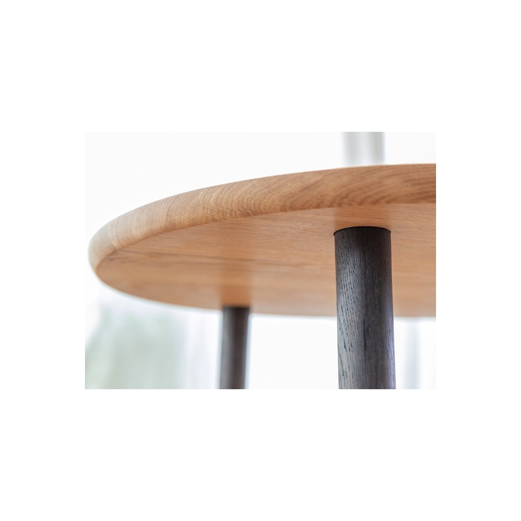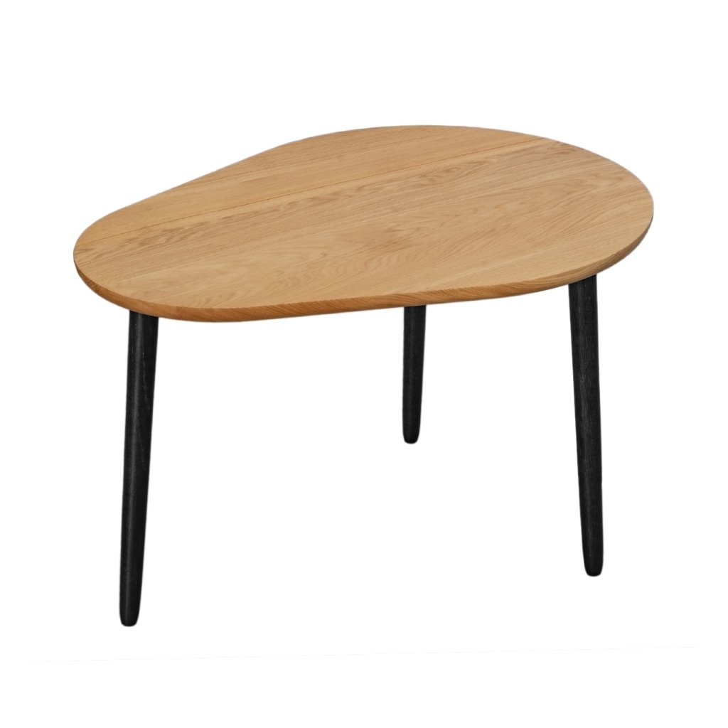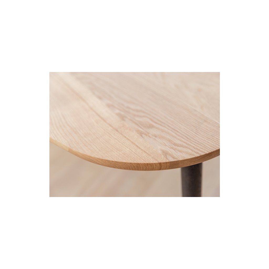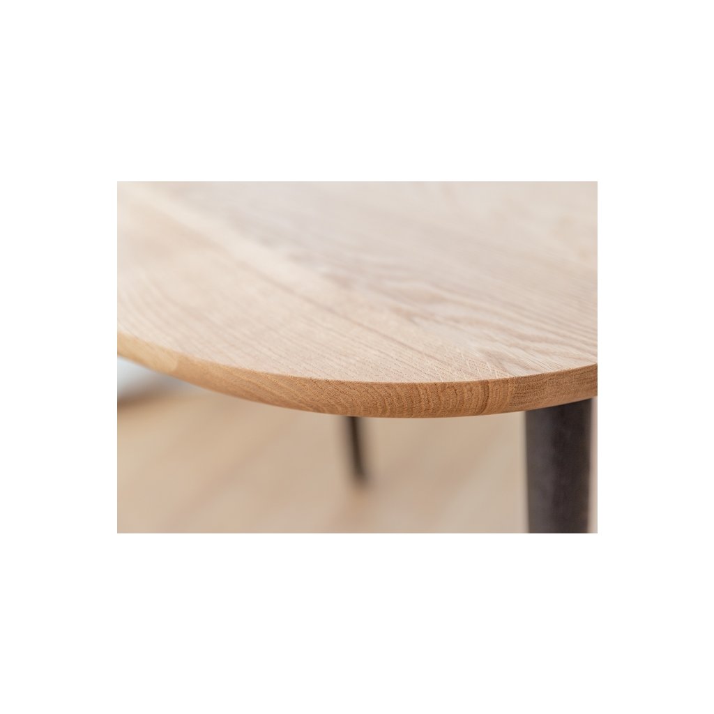 Dubový konferenční stolek AWOKADO z masivu je nejen stylový a praktický, ale také dokonale odpovídá trendům současné interiérové módy. Desku stolu z naolejovaného dubového dřeva drží tři načerno natřené nohy ze stejného materiálu. Povrchovou úpravou nebyla narušena viditelná struktura dřeva, takže celý kus působí velice přírodně.