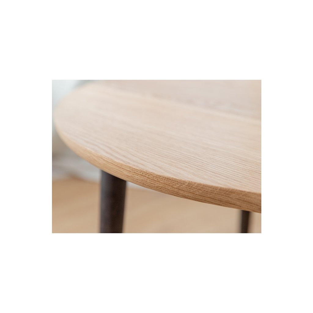 Dubový konferenční stolek AWOKADO je nádherný konferenční stolek z masivu, který svým tvarem připomíná plodinu, podle které nosí jméno, díky čemuž vyniká vedle běžných hranatých masivů. Díky své kulatosti a jednoduché struktuře esteticky nepřehlcuje interiér a hodí se tak k jakékoli sedací soupravě. Zakomponovat jej můžete například do obývacího pokoje zařízeného ve skandinávském, klasickém i moderním stylu.