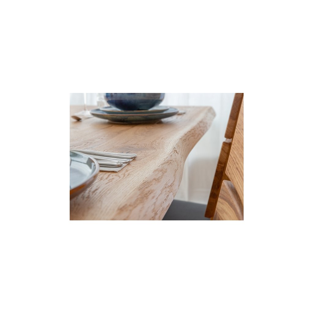 Stůl z dubového masivu je nadčasový kousek, který jen tak z módy nevyjde, a to navzdory často se měnícím trendům. Přírodní odstín dubového dřeva s černými kovovými nohami a dřevěnými vložkami dokonale odráží charakter stolu. Gavardo 100x200 je se svým lehkým korpusem ideální do prostorných interiérů, nezatěžuje ale ani malé kuchyně, obývací pokoje nebo jídelny.
