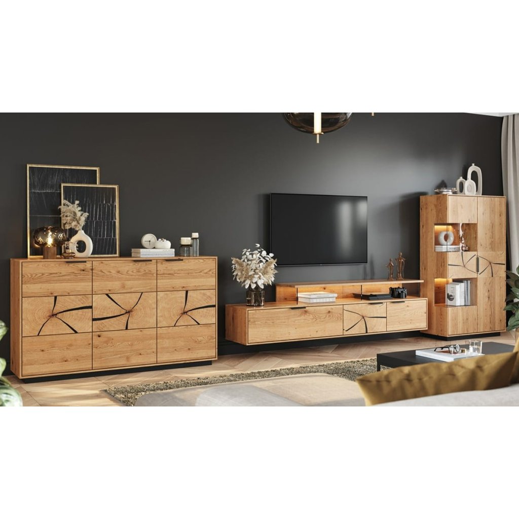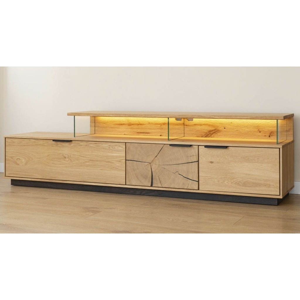 Dubový Tv stolek Ardano kombinuje přírodní kouzlo dubového dřeva s prvky moderního a výrazného designu. Zlatavé odstíny, zdůrazněné přirozenými uzly a kresbou letokruhů, dodávají interiéru hřejivý nádech, zatímco minimalistická konstrukce přispívá k harmonické atmosféře a nepůsobí těžkopádně. Tento kus nábytku je ideální volbou pro moderní obývací pokoje, kde vytváří stylové prostředí pro elektroniku.