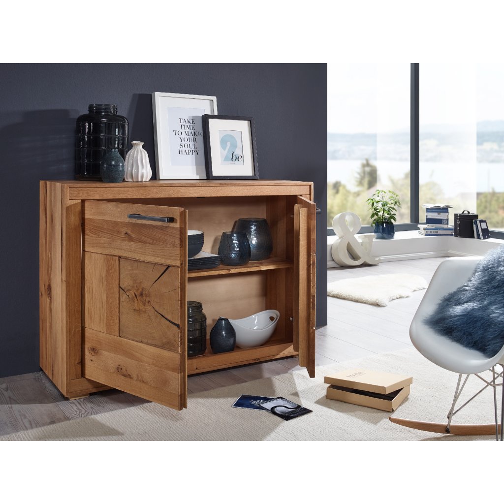 Dvoudveřová komoda MANDALA je stylová komoda, vhodná do Vaší kuchyně, ložnice nebo obývacího pokoje. Komoda je vyrobena z masivního dubového dřeva s kovovými úchyty. Výběr tohoto materiálu zajišťuje, že se jedná o produkt špičkové kvality a nábytek má jedinečný vzhled díky svému provedení z masivního dřeva. Povrch nábytku je ošetřen čirým olejem.