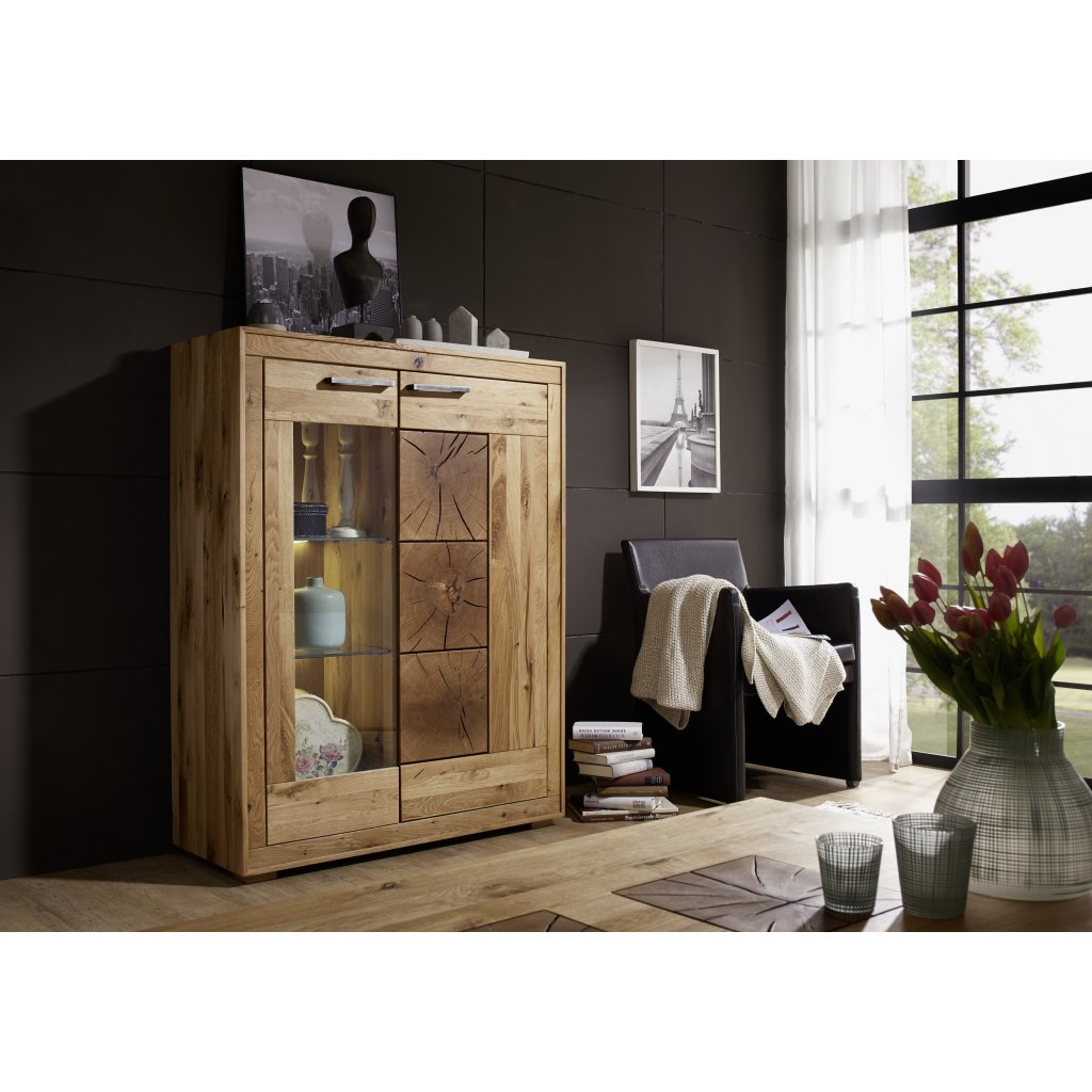 Dvoudveřová kredenc MANDALA je stylová kredenc, vhodná do Vaší kuchyně nebo jídelny. Kredenc je vyrobena z masivního dubového dřeva se skleněnými dvířky a kovovými úchyty. Výběr tohoto materiálu zajišťuje, že se jedná o produkt špičkové kvality a nábytek má jedinečný vzhled díky svému provedení z masivního dřeva. Povrch nábytku je ošetřen čirým olejem.