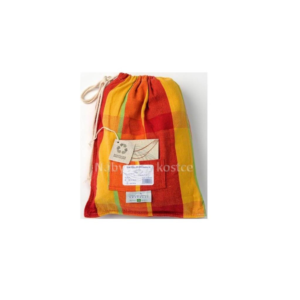 Houpací síť Barbados papaya je balená ve vaku, který je ušitý ze stejného materiálu, jako samotná síť s praktickým uchem, takže si ji můžete vzít kdekoliv sebou.