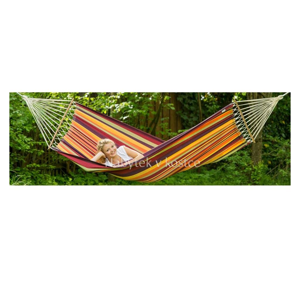 Houpací síť Brasilia tropical dodáváme v praktickém pouzdře, který je ušitý ze stejného materiálu jako samotná síť.