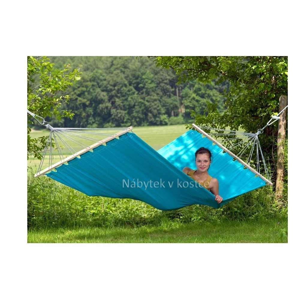 Houpací síť Miami aqua je moderní houpací siť vyrobená ekologickou cestou, tj. lisováním zbytků látek, které vznikly při textilní výrobě. Tato tkanina je velmi odolná povětrnostem podmínkám, vodě a UV záření. Zaručí maximální míru pohodlí, neboť je na dotek velmi jemná, měkká a zároveň prodyšná.