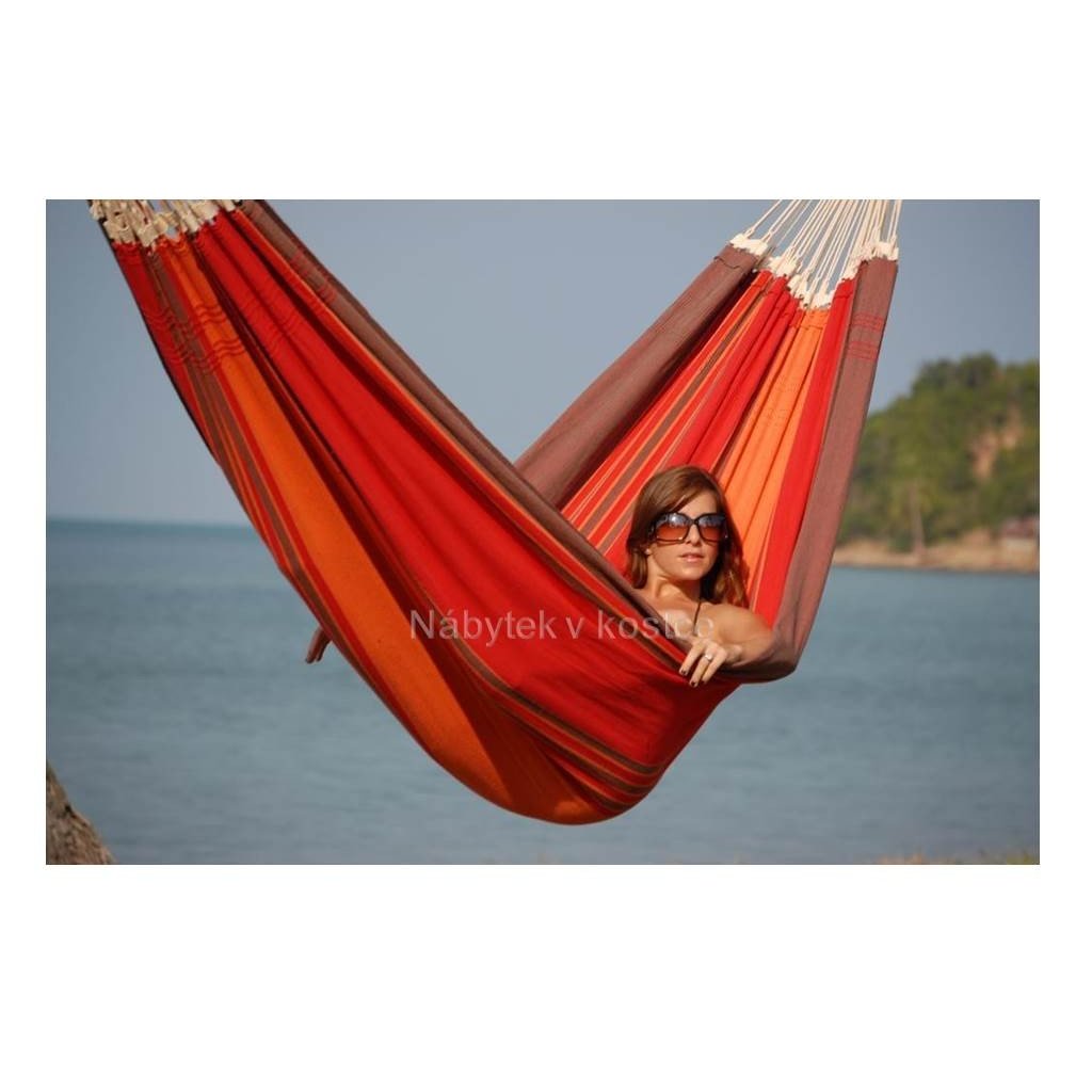 Rodinná houpací síť Paradiso terracotta je jedna z největších brazilských houpacích sítí. Jen velmi málo tkalcovských stavu jsou schopny výroby 1,75 m široké tkaniny, tak aby tato obří houpací síť byla velmi pevná a jemná zároveň, téměř 5000 vláken jsou tkány dohromady.