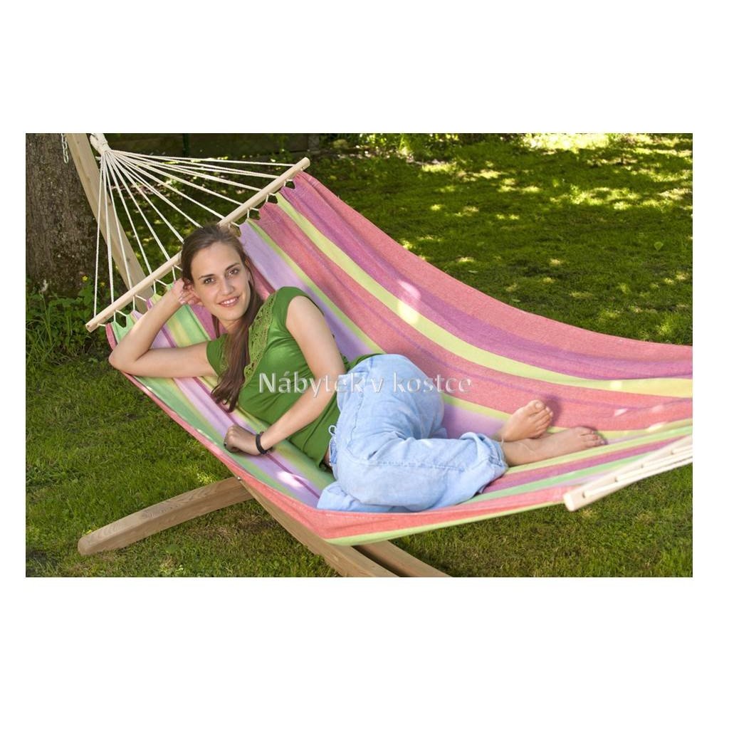 Pestrobarevná houpací síť TONGA BUBBLEGUM je pro jednu osobu v provedení s tyčemi. Houpací síť Tonga bubblegum je vyrobena z vlákna EllTex, které je odolnější proti opotřebení i povětrnostním vlivům, přesto si uchovává všechny kladné vlastnosti stoprocentní bavlny - měkkost, hebkost a prodyšnost.