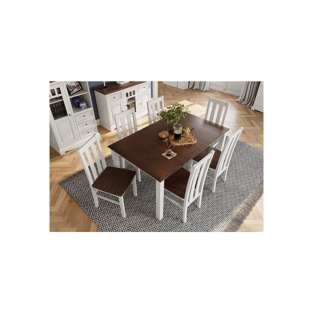 Jídelní stůl BELLUNO Elegante z masivu bílý-ořech