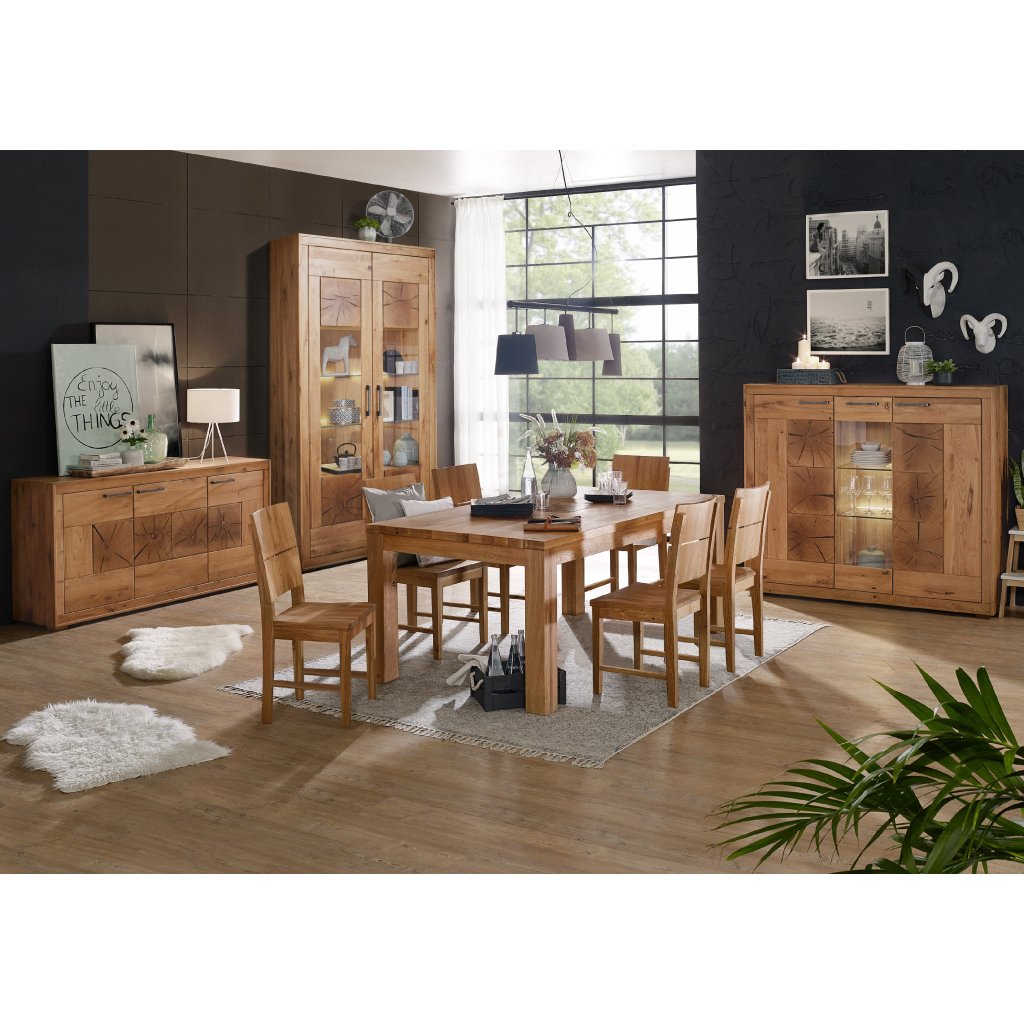 Jídelní stůl MANDALA je stylový stůl, vhodný do Vaší jídelny, kuchyně nebo obývacího pokoje. Jídelní stůl je vyroben z masivního dubového dřeva. Výběr tohoto materiálu zajišťuje, že se jedná o produkt špičkové kvality a nábytek má jedinečný vzhled díky svému provedení z masivního dřeva. Povrch nábytku je ošetřen čirým olejem.