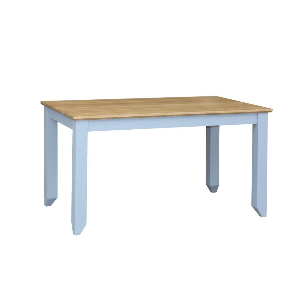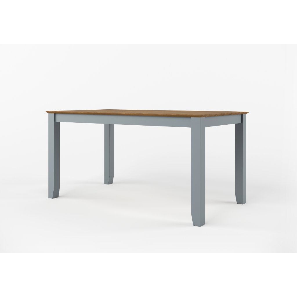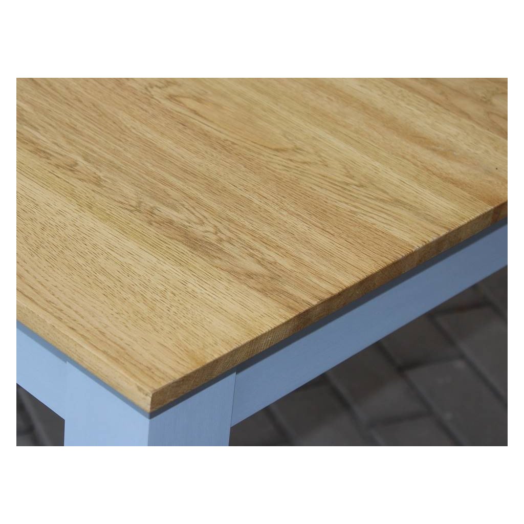 Masivní jídelní stůl PROVENCE je vyroben z masivního bukového dřeva a ošetřen akrylovou barvou v šedomodré barvě. Deska stolu je vyrobena z dubového masivu a ošetřena lakem.