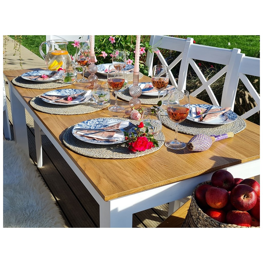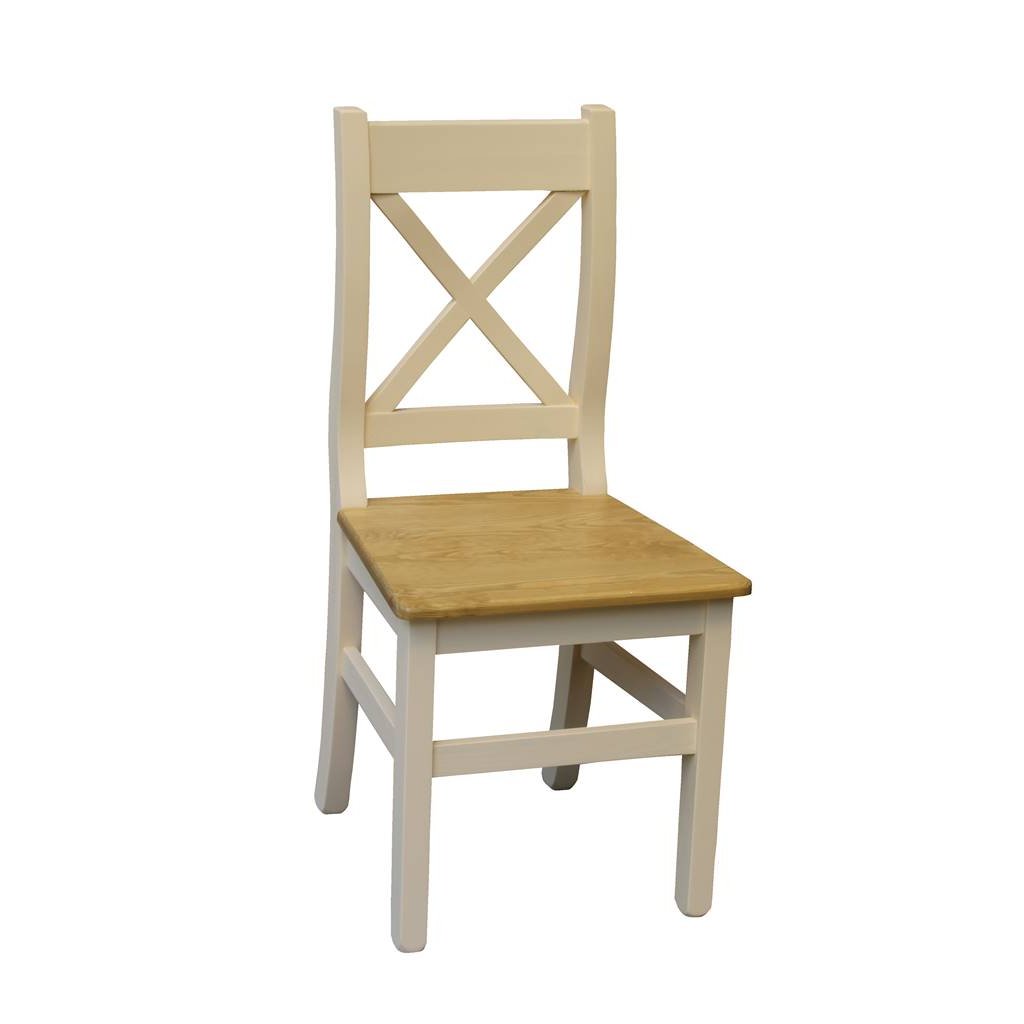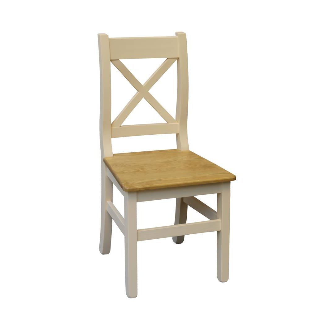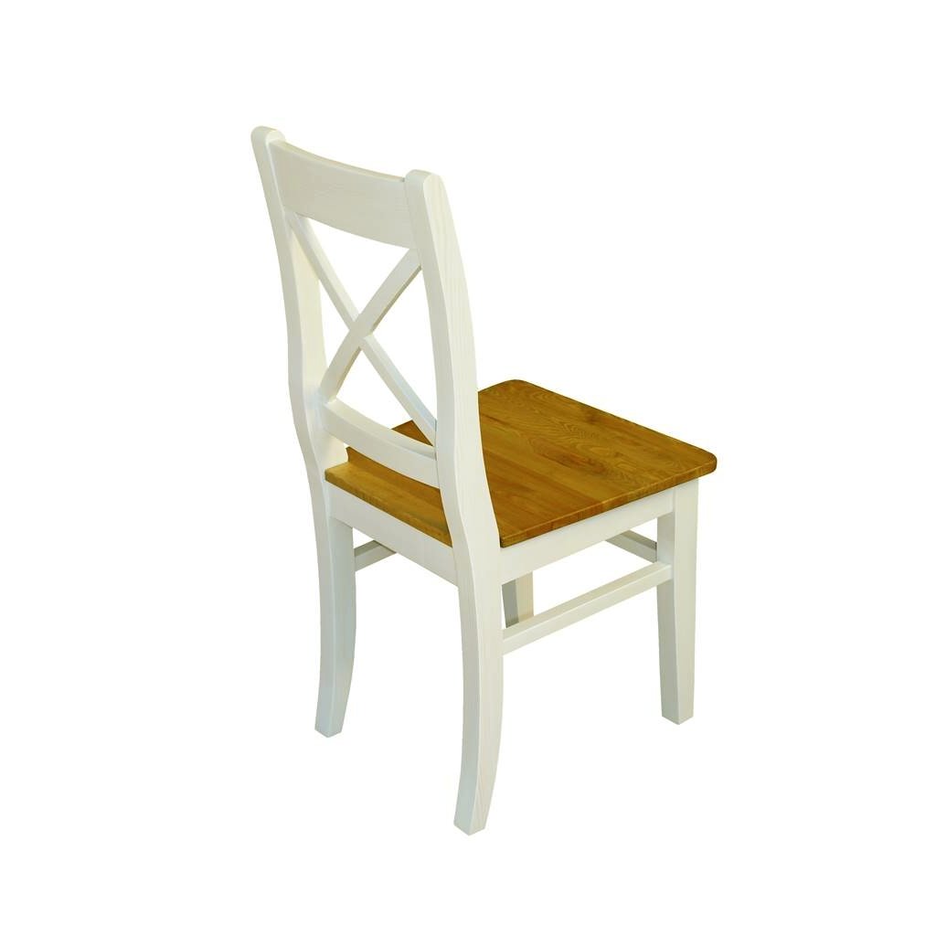 Masivní jídelní židle PROVENCE je vyrobena z masivního borovicového dřeva. Horní deska může být vyrobena z borovicového anebo dubového dřeva. Sedací část je ošetřena lakem a nohy židle akrylovou barvou v krémové barvě.