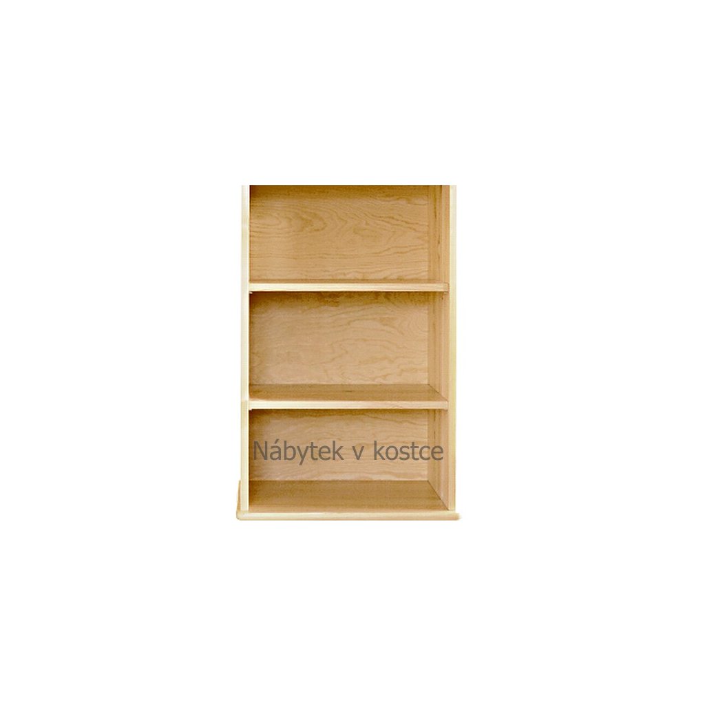 Úzká jednoduchá knihovna z masivu DEJ40 se dokonale hodí do nevyužitých prostorů. Tento regál obsahuje tři pevné poličky, na které můžete uložit knihy, porcelán nebo jakékoliv cennosti a tři výsuvné šuplíky. Všechny šuplíky jsou na kvalitních kovových pojezdech. Celá knihovna je postavena na kulatých nožkách. Vitrína DEJ40 je vyrobená z masivního borovicového dřeva s důrazem na využití minimálního množství suku.