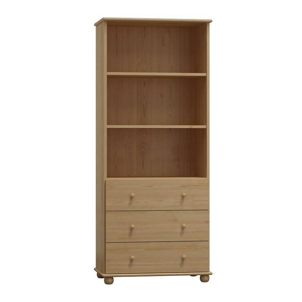 Knihovna z masivu Šumava je vyrobená z borovicového masivu a ošetřená bezbarvým lakem, který dá vyniknout nádherné struktuře dřeva. Tato praktická skříň vlastní police a tři šuplíky na kvalitních kovových pojezdech, s praktickými kulatými úchyty ze dřeva. Čela šuplíků jsou v hladkém jednoduchém stylu s čistými liniemi. Dvířka skříňky zdobí frézování, které dodávají knihovně nádech elegance.