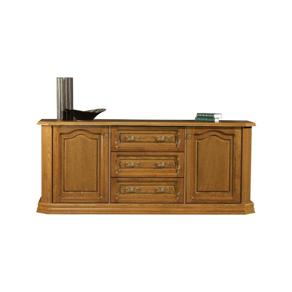 Komoda kombinovaná KINGA je vyrobená v pěkném rustikálním stylu nabízí hodně úložného prostoru. Uprostřed komody se nacházejí tři velké výsuvné šuplíky opatřené ozdobnými úchyty. Po stranách je prostor uzavřený dvířky. Pokud přidáte ke komodě i jiné výrobky KINGA, pak si můžete vytvořit např. obývací pokoj, ložnici.