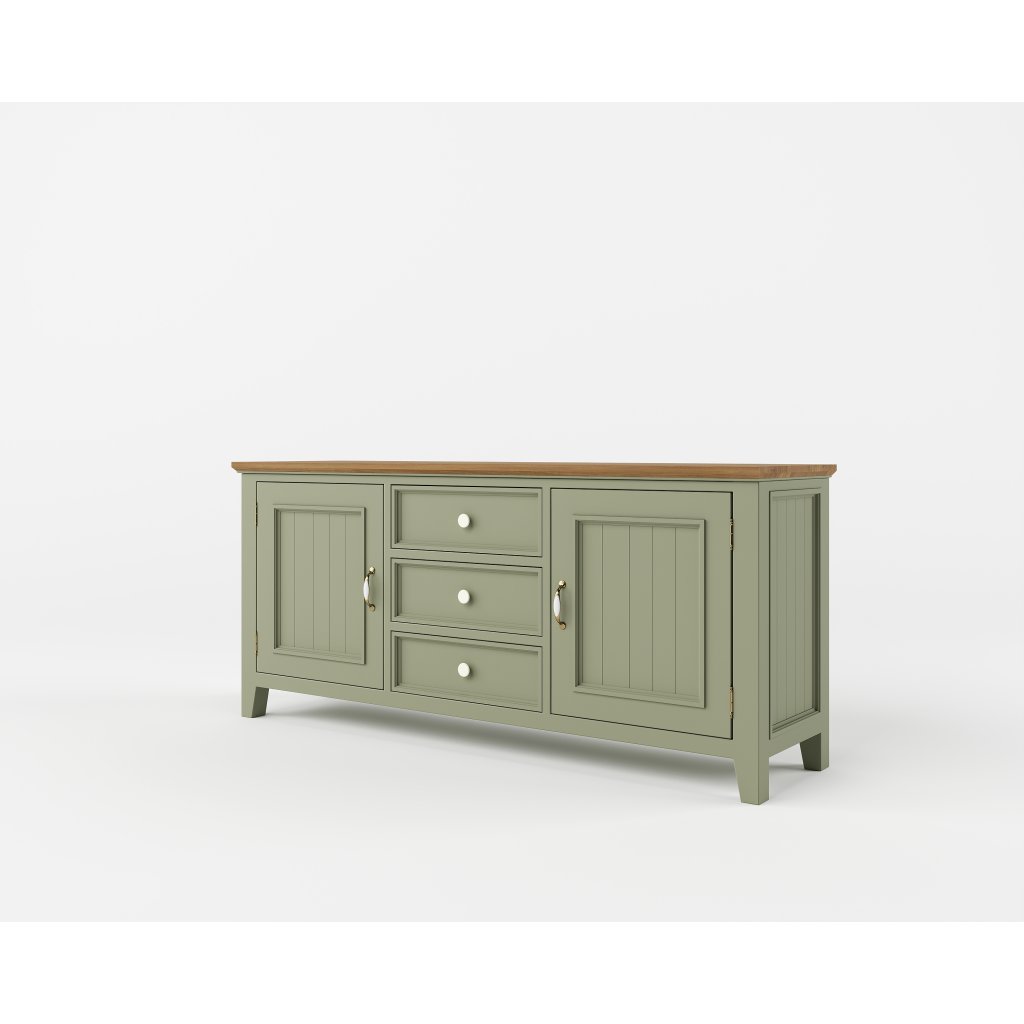 Masivní komoda PROVENCE je spojením bukového a dubového dřeva. Dubové dřevo (horní deska) je ošetřeno lakem a bukové dřevo je ošetřeno akrylovou barvou v olivové barvě. Šuplíky jsou bez pojezdu. Možnost objednání se systémem tichého zavíraní.