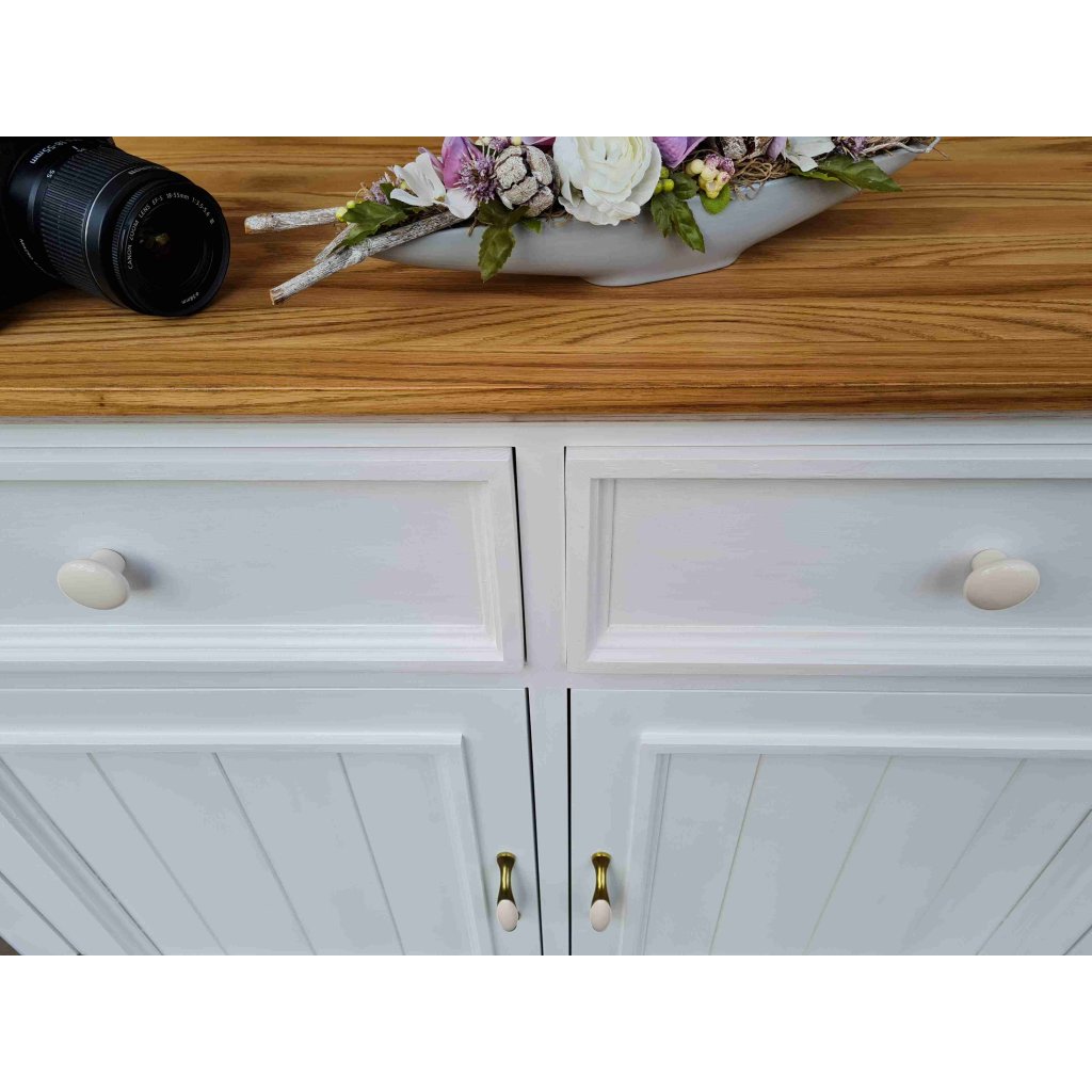 Masivní komoda PROVENCE je komoda vyrobená z masivního bukového dřeva, které je ošetřeno akrylovou barvou v krémovém odstínu, a z masivního dubového dřeva (horní deska), které je ošetřeno lakem. Díky spojení těchto dvou druhů masivního dřeva získala masivní komoda jedinečný vzhled, který zdokonalí veškerý interiér.